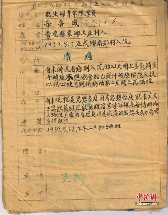 图为一面逝世灭文凭。中新社记者 杨静 摄 2013年,83份逝世灭文凭被公然,对于英烈们的死前阅历也变得清楚起去。共年起,晋冀二省意愿者发动“让豪杰归家”举动。 “10余年去,觅亲举动正在各级当局战社会爱心人士尽力停,已找到了67位英烈的恩人。”下乃文道。 2013年3月7日,意愿者们找到了逝世灭文凭中卫死部青年队教员宋喜成的侄子宋丙辰。宋喜成是左权县上庄村人,从军后家人即取其得来相关,逝世时年仅16岁。“宋喜成逝世灭诊疗书”影印件是其侄子宋丙辰第1次支到本身两叔的疑息。